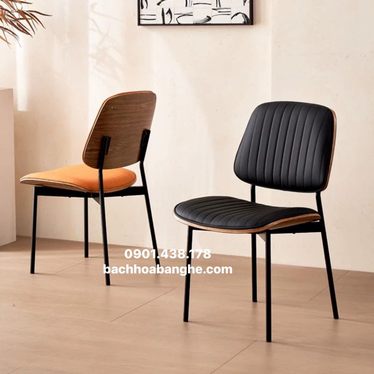 Điểm khác biệt của sản phẩm này chính là phần lưng và mặt ngồi được ốp gỗ cao cấp, kết hợp cùng nệm bọc da êm ái và khung sắt sơn tĩnh điện chắc chắn – một sự phối hợp hoàn hảo giữa bền và đẹp.