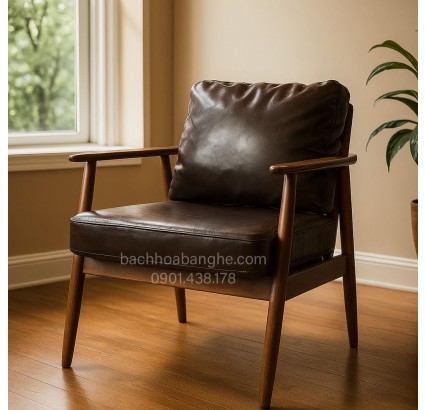 Chiếc ghế được thiết kế theo xu hướng Bắc Âu hiện đại, khung gỗ tự nhiên chắc chắn kết hợp đệm da nâu mềm mại, mang lại cảm giác êm ái và đẳng cấp. Ghế phù hợp cho phòng khách, quán cà phê, văn phòng tiếp khách hay góc thư giãn trong căn hộ, studio... Từng đường nét được hoàn thiện tỉ mỉ, tạo nên vẻ đẹp tinh tế, bền bỉ theo thời gian. Sản phẩm không chỉ là món nội thất tiện nghi mà còn là điểm nhấn giúp không gian thêm ấm cúng và sang trọng.