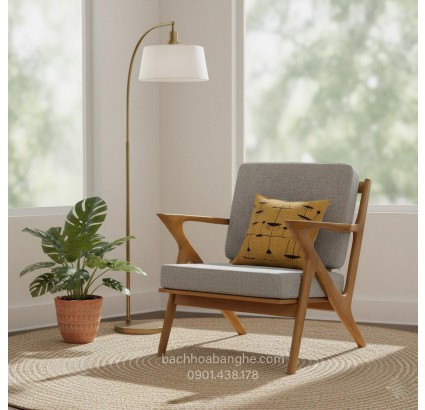Ghế sofa đơn bọc vải xám khung gỗ tự nhiên